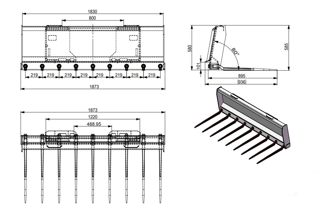 The manure forks is a robust and stable tool for efficient handling of manure and silage for Skid Steer Loader.